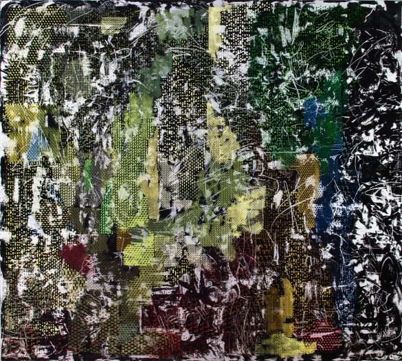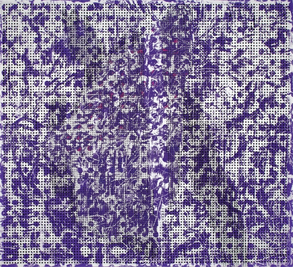 Jacqueline Humphries’ new large-scale paintings, recently on view at Greene Naftali’s new ground floor space, are an exploration of what we might call screen noise abstracted into paintings that I don’t want to stop looking at.