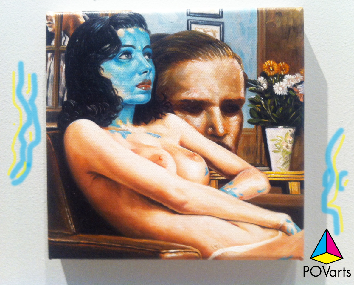 In his latest show, “New Works” Serge Sorokko Gallery, you can see Eric struggle with the crazy of his adopted hometown of LA – with painting made from before and after moving to Lalaland. Originally from Ann Arbor, a utopian sort of small college town, aside from the artist declared bad weather, through RISD, a series of romantic misadventures in San Francisco, because if not for anything, what else is San Francisco good for, current tech bubble aside, and finally down, as in south, to his current home in LA, where after selling one of his early pieces to LA royalty, he’s now become a court artist of sorts, lover as well.