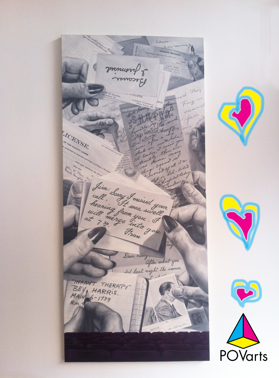 “New Works’ is nothing if not Hollywood nostalgia, though he admits that it is covered in his own paranoia about what it means, and what it is trying to say, and so his work, all meticulously, and beautiful painted, gently touches upon the dreams that movie land promises, only to know that just underneath those promises is something much more sinister, something much more dangerous – a belief that the world is something that it is not. A belief in truth and justice, and what might be called the American Way, none of which is actually real.