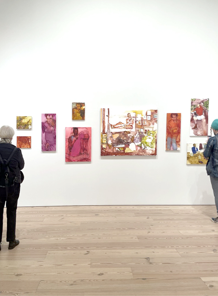 Interestingly, there are only two or three really large paintings that are traditionally considered museum-sized, while most of the works on view read as sketches or studies. The smaller works are just as thoughtfully complex, rich, and complete in their subject and composition, size be damned. These works, perhaps above all, make clear that Packer is a very thoughtful witness to life and underscore her keen observational powers. She reminds us of our shared humanity. This is a show not to be missed.