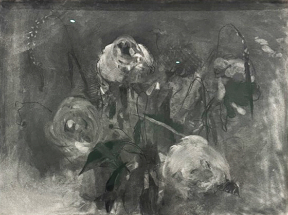 In Untitled (above), the material is so smoothly applied it is nearly creamy, yet distinct lines float clearly over it to add to the forms. There is such a balance between an overall softness and delicate line delineation that is unusual with the medium.